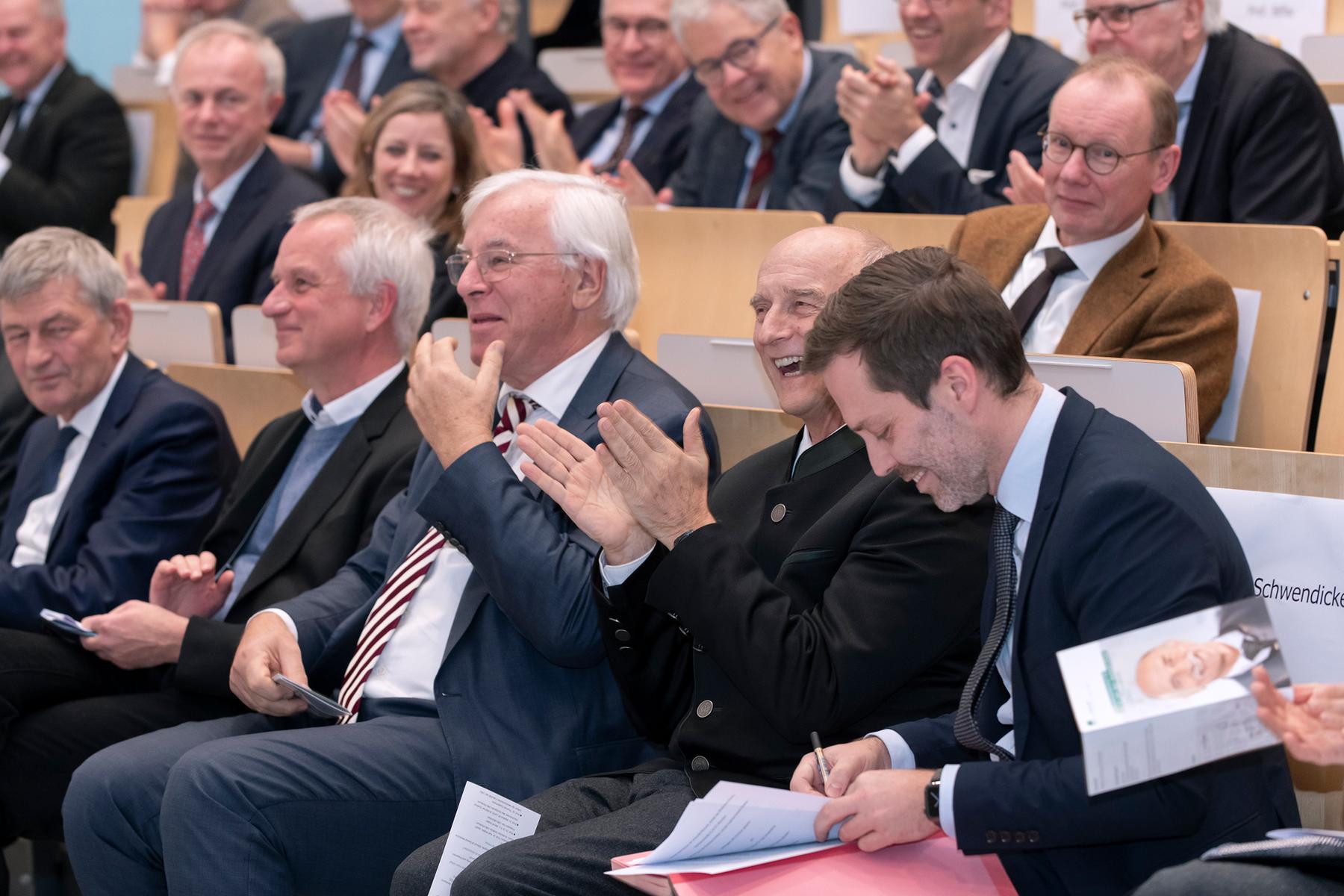 „Du hast auf eine Art und Weise Wissenschaft in der Zahnmedizin betrieben, die ganz außerordentlich ist. Die Projekte Deiner Arbeitsgruppe zu Restaurationsmaterialien und der Rolle von Amalgam wurden sieben Mal von der Deutschen Forschungsgemeinschaft gefördert. Du hast mit 37 Jahren den Lehrstuhl für Zahnmedizin übernommen und hast 15 Jahre lang als Mitglied des Vorstandes die Geschichte von Fakultät und LMU Klinikum mitgestaltet. Dafür möchte ich Dir, lieber Reinhard, herzlich danken.“