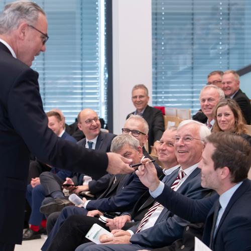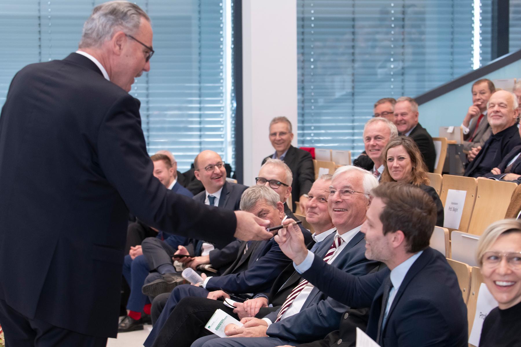 „Die Rolle des Dekans der Medizinischen Fakultät ist sicherlich eines der anspruchsvollsten interessantesten, aber eben auch schwierigsten Ämter, die wir haben. Du hast das sechs Jahre gemacht, Du hast die Aufgabe bravourös gemeistert. Das kann man an vielen Punkten erkennen, ob es um Forschung und Lehre, Berufungen, oder auch Bauvorhaben geht. Da hat sich vieles in diesen sechs Jahren ergeben und ich möchte für die gute Zusammenarbeit und für die Loyalität in diesen sechs Jahren ganz herzlich danken.“
